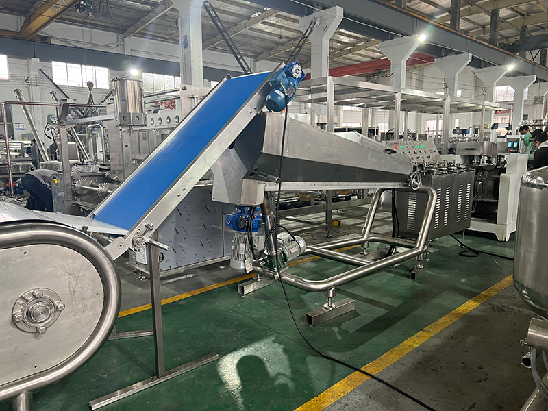 Данные линии оснащены следующими ключевыми узлами: аппарат непрерывной варки сиропа, охлаждающий стол, катальная машина с функцией регулировки температуры, калибрующе-вытягивающая машина для карамельного жгута, высокоскоростная конфетоформующая машина, туннельный охладитель и полностью автоматическая упаковочная машина. Наши линии осуществляют весь процесс производства конфет: от варки сиропа, формирования и охлаждения конфет до их упаковки.