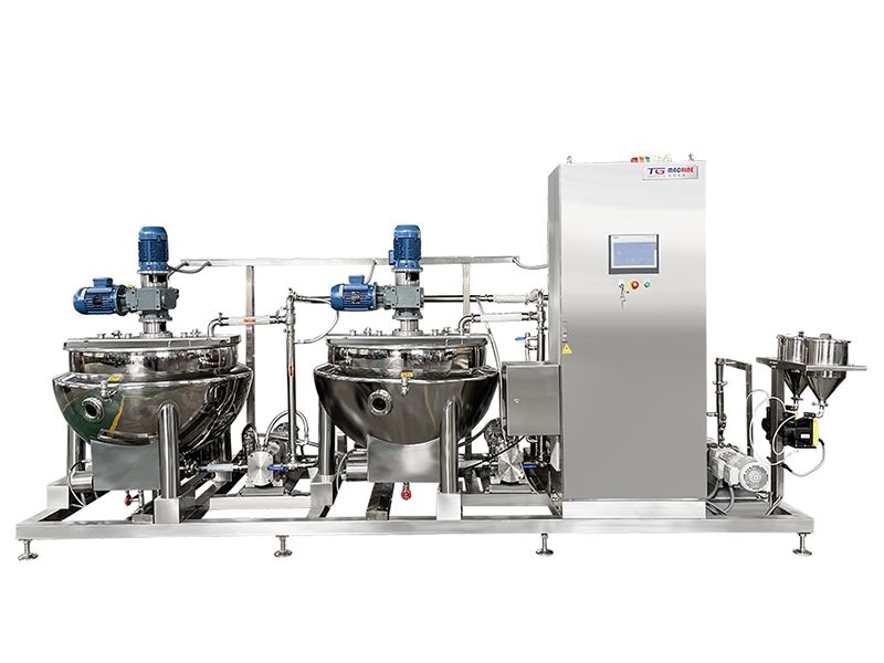 Система приготовления – это автоматическая система для растворения и смешивания ингредиентов мармеладной продукции. Сахар, глюкоза и другое сырье смешиваются с сиропом в сосуде. После чего, смешанные ингредиенты перемещаются в резервуар для хранения для следующего этапа производства. Весь процесс приготовления контролируется отдельным блоком управления.