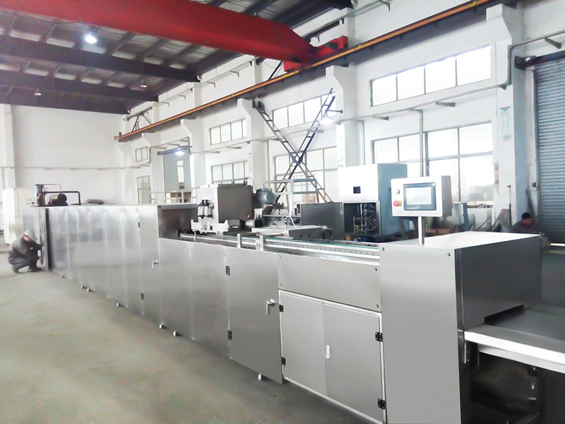 Наша команда высококвалифицированных специалистов разработала уникальную производственную линию в соответствии с эскизами, предоставленными заказчиком. Производственная линия для глазирования состоит из машины для тонкого измельчения шоколадной массы объемом в 500л, резервуара для хранения шоколада объемом в 500л и глазировочной машины. Производсвенная линия вафель включает машину для взбивания яиц, оборудование подачи материала, формующую машину, машину для резки вафель и глазировочную машину. Производственные линии оснащены моторными и электрическими комплектующими от компании Siemens.