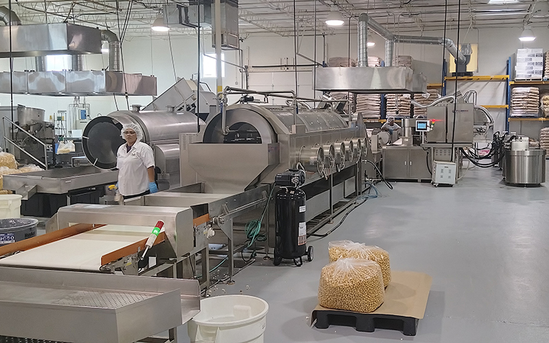 Компания выпускает широкий ассортимент попкорна с разными вкусами. Продукция высоко ценится на рынке США и отмечена несколькими отраслевыми наградами. В 2024 году производитель обратился к нам, чтобы нарастить мощности и закрыть растущий спрос. По требованиям клиента мы разработали и изготовили специализированную линию по производству попкорна, а также направили инженеров для монтажа на площадке и обучения персонала.